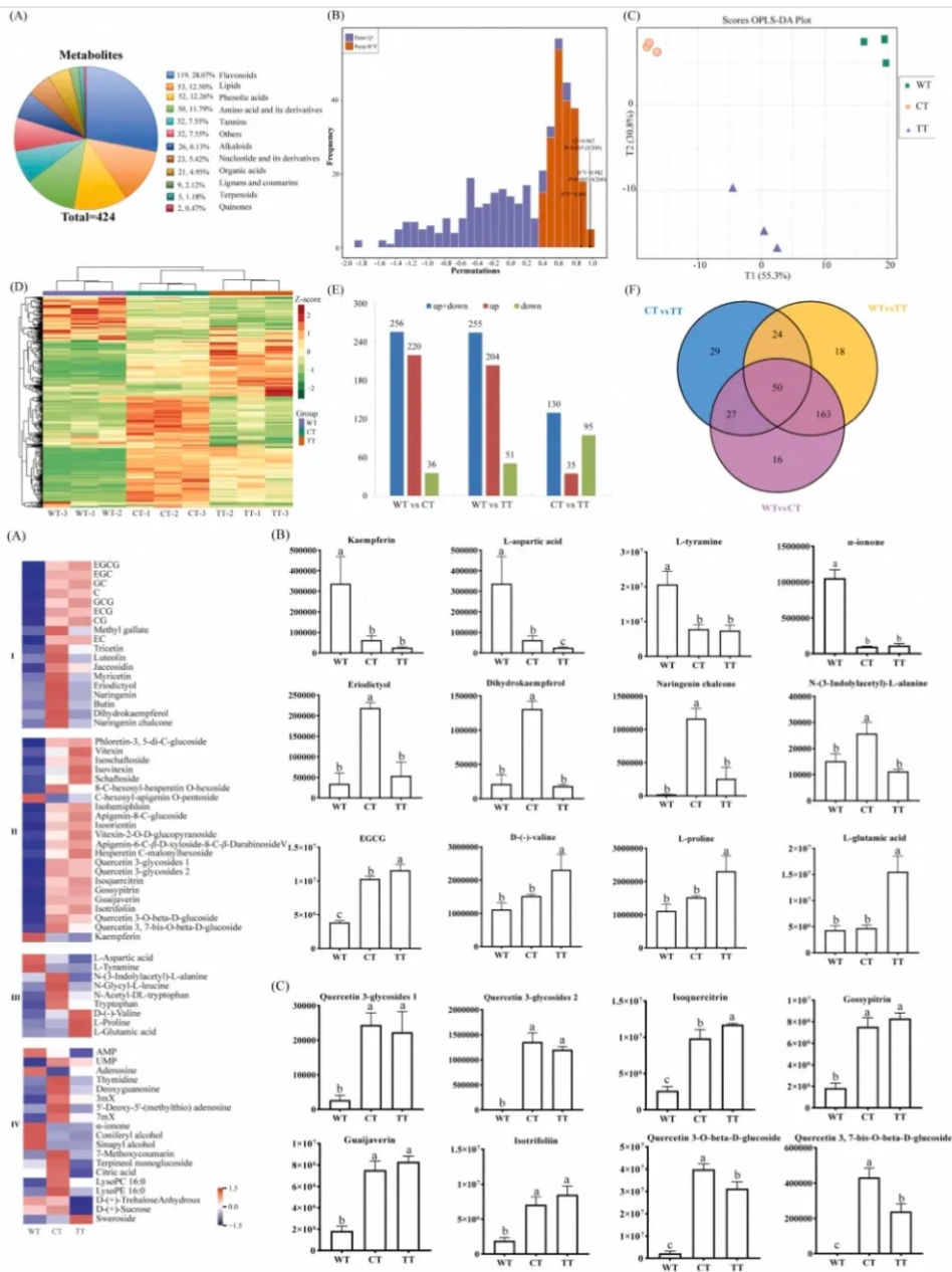 茶(Camellia sinensis ( L. )0.Ktze. ) )作为全球重要的经济作物,其鲜叶中丰富的代谢物是茶叶品质与风味的前体物质。此研究聚焦于云南省三种具有代表性的茶树资源:野生型古茶树(WT, C. taliensis)、栽培型古茶树(CT, C. sinensis var. assamica)和栽培型台地茶(TT, C. sinensis var. assamica),旨在揭示不同类型茶树鲜叶在代谢物积累和转录调控层面的差异及其对茶叶风味形成的贡献。