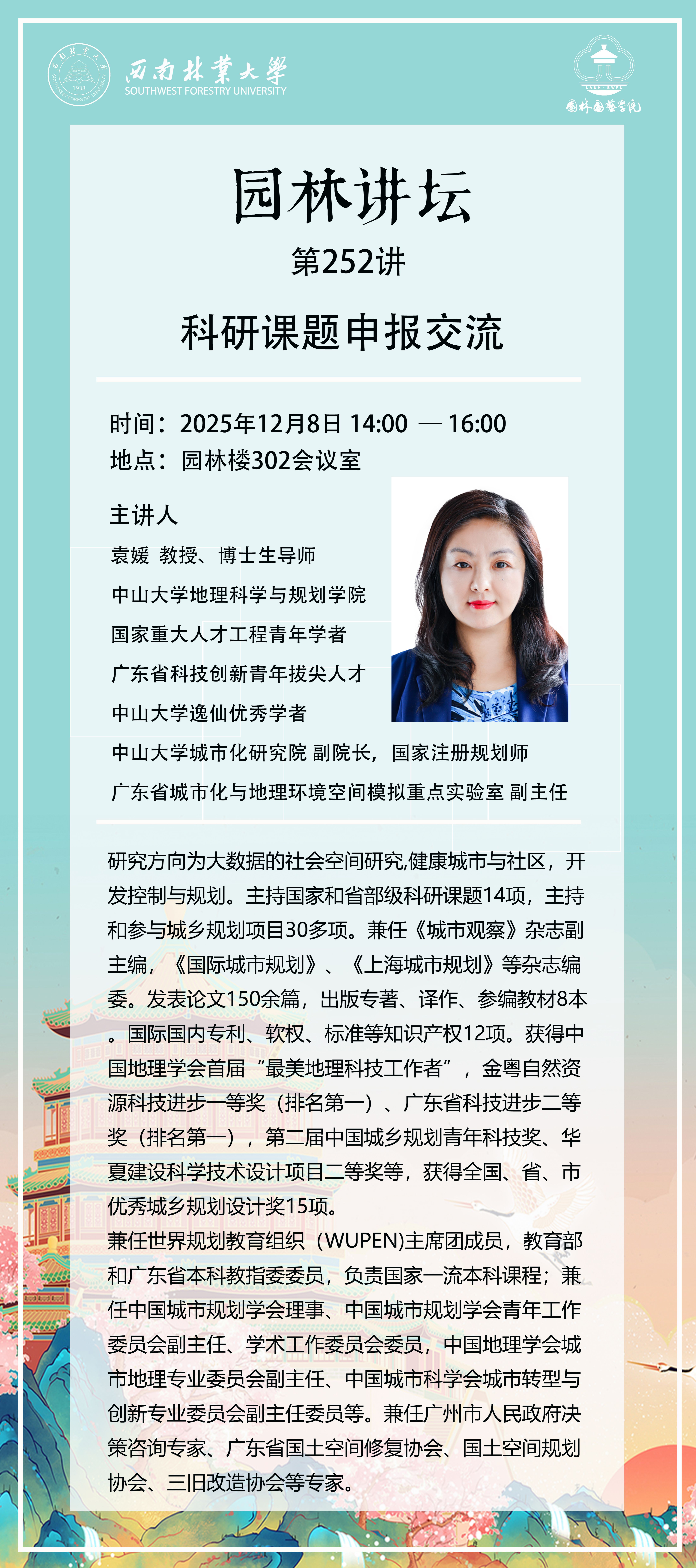 讲座地点:园林楼302